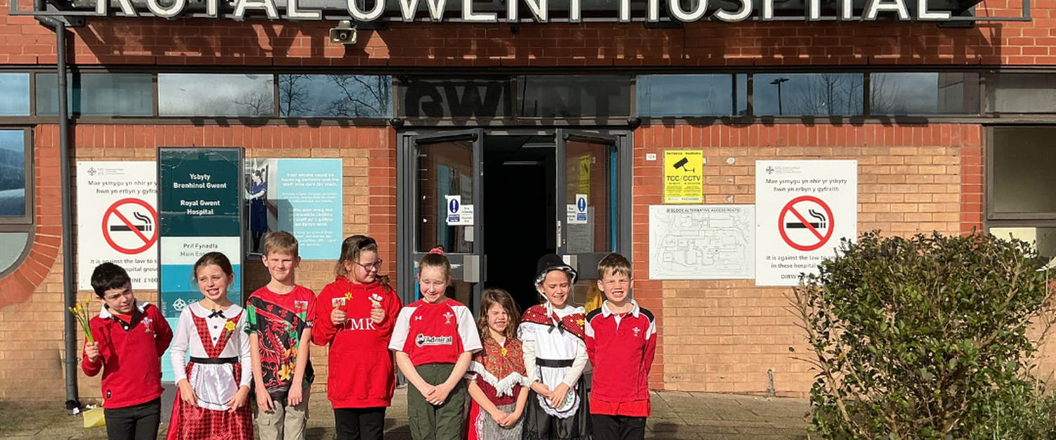 Patients, staff and visitors at the Royal Gwent Hospital were treated to an early St David’s Day visit on Friday from pupils at local primary school, Ysgol Gymraeg Nant Gwenlli.