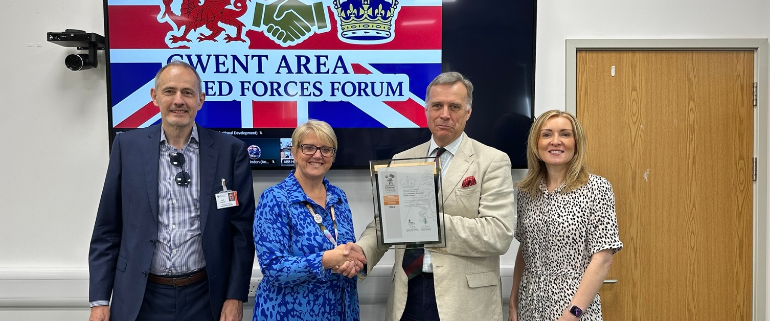 The award was formally presented during the Gwent Area Armed Forces Forum, held at St Cadocs Hospital. Receiving the award on behalf of the organisation were Nicola Prygodzicz, Chief Executive, and Neil Patrick, ABUHB’s Armed Forces Champion and Chair of the Forum.